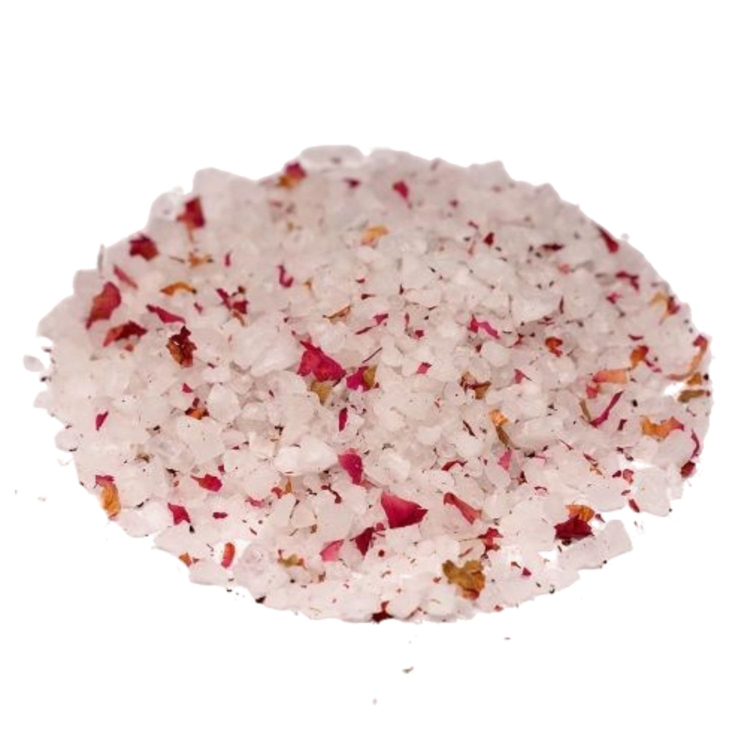 - Φυσικό θαλασσινό αλάτι με αποξηραμένα ροδοπέταλα και άνθη.