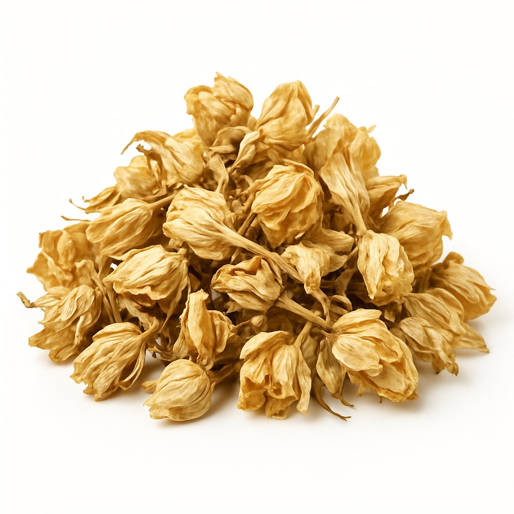 Ο αποξηραμένος ανθός γιασεμιού ξεχωρίζει για το λεπτό, γλυκό και ανθώδες άρωμά του, προσφέροντας μια απαλά αρωματική και εκλεπτυσμένη γευστική εμπειρία. Χρησιμοποιείται τόσο στη βοτανική παράδοση όσο και στη γαστρονομία, χαρίζοντας ντελικάτη αρωματική ένταση και αίσθηση φρεσκάδας.