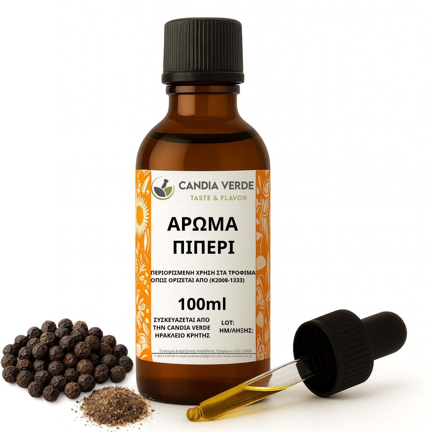 Το Υγρό Άρωμα Μαύρου Πιπεριού είναι ένα συμπυκνωμένο, φυσικό εκχύλισμα κατάλληλο για τρόφιμα, με αυθεντικό, πικάντικο και ζεστό άρωμα φρεσκοτριμμένου μαύρου πιπεριού. Προσφέρει ένταση, βάθος και αρωματική πολυπλοκότητα χωρίς να αλλάζει την υφή ή την όψη του φαγητού, επιτρέποντας απόλυτο έλεγχο στη δόση και στη γευστική ισορροπία.