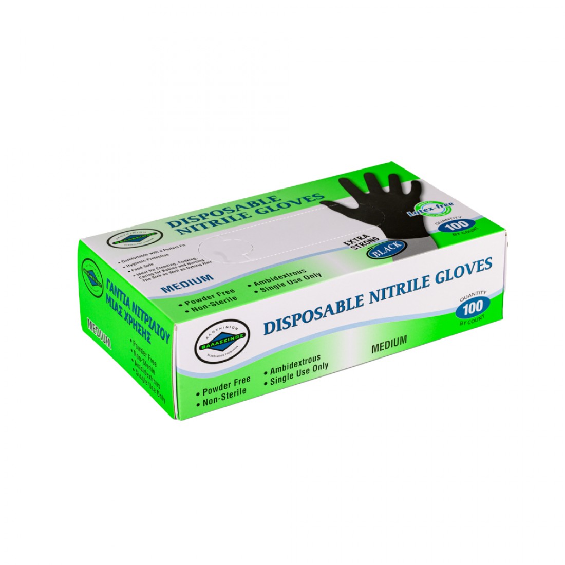 Γάντια Νιτριλίου Μιας Χρήσης Χωρίς Πούδρα Μαύρο 100τμχ