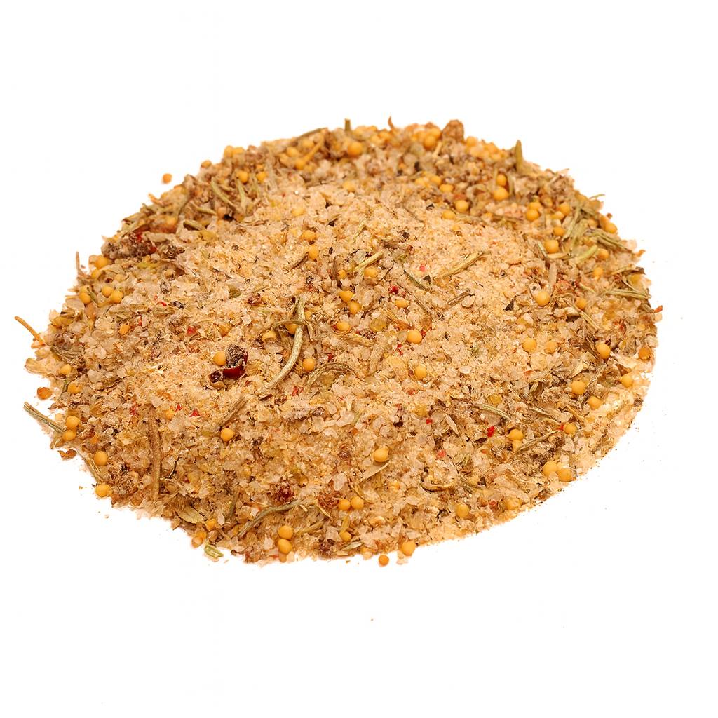 Αλάτι, ζάχαρη καστανή, δεντρολίβανο, ντομάτα, τσιμένι, θυμάρι, κρεμμύδι, σκόρδο, σιναπόσπορος, μείγμα πιπεριών, σάκχαρα.