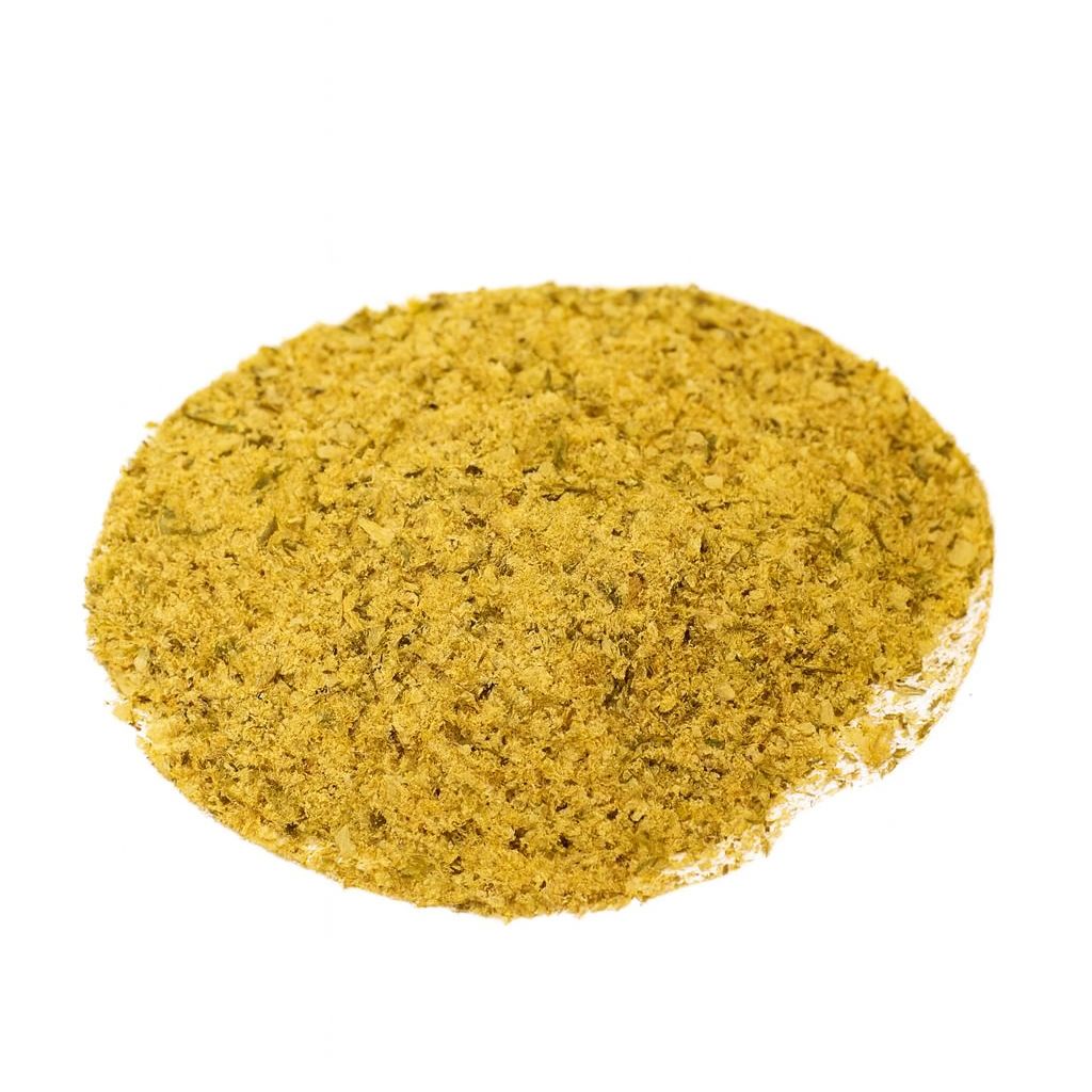Σάκχαρα, αλάτι, πάπρικα γλυκιά , μουστάρδα σκόνη, κόλιανδρος τριμμένος, ρίγανη, πιπέρι μαύρο τριμμένο, θυμάρι, εκχύλισμα μαγιάς, κρεμμύδι granule, κύμινο τριμμένο, φυτικά λιπαρά (φοινικέλαιο).