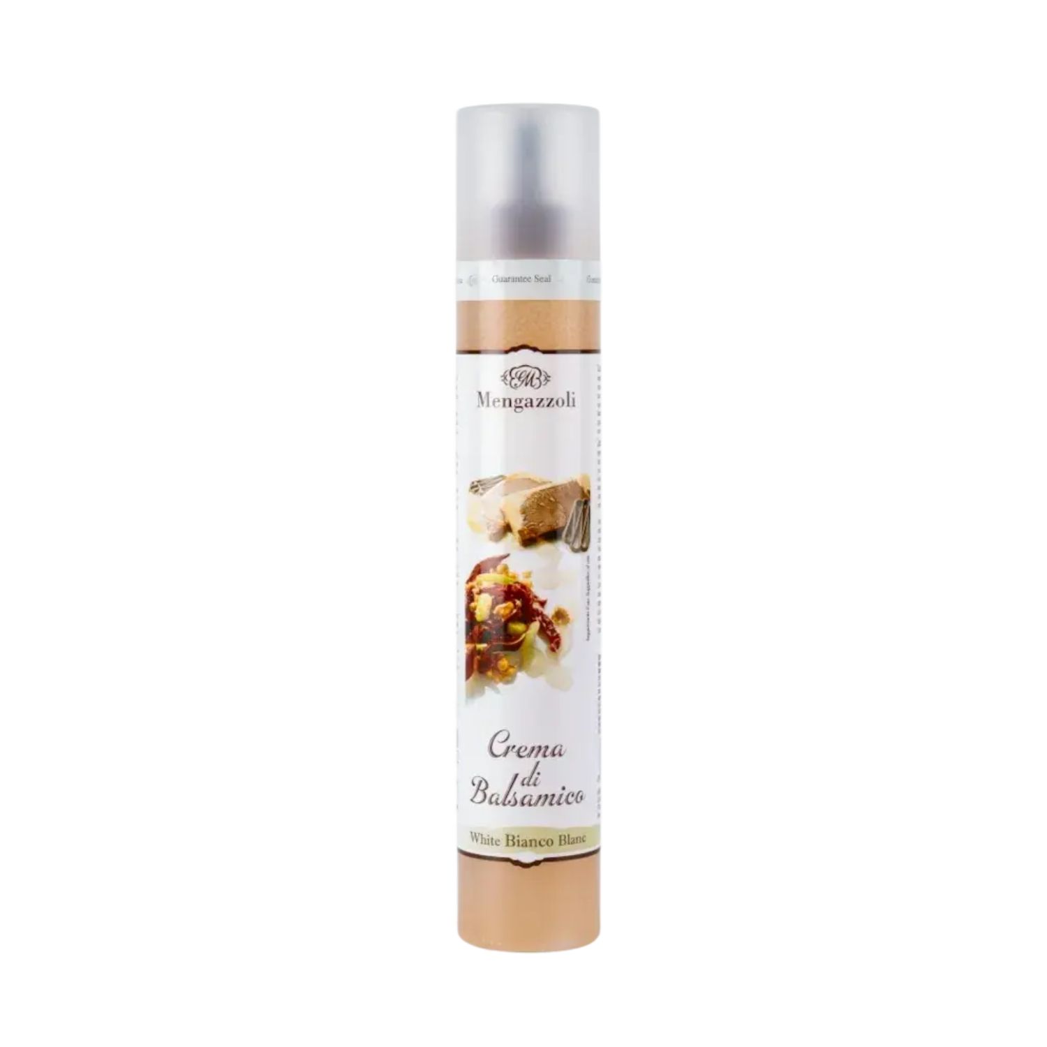 Λευκό βαλσαμικό καρύκευμα 92% (ξύδι κρασιού (θειώδη), συμπυκνωμένος χυμός σταφυλιών, (θειώδη), σιρόπι γλυκόζης, τροποποιημένο άμυλο καλαμποκιού, μαλτοδεξτρίνη, δεξτρόζη, πυκνωτικό μέσο: κόμμι ξανθάνης.