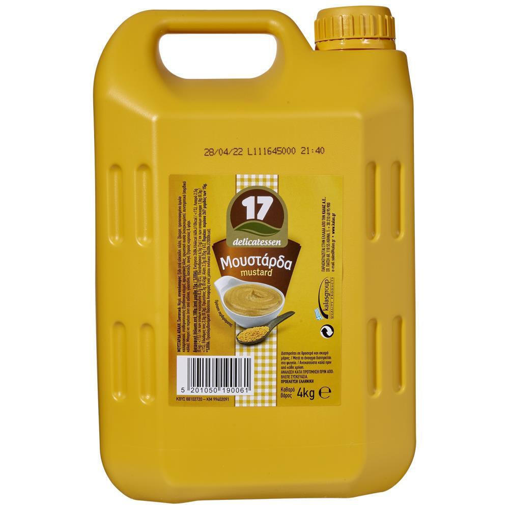 Η Μουστάρδα είναι μία κλασική, απαλή και ισορροπημένη μουστάρδα, κατάλληλη για επαγγελματική χρήση σε κουζίνες, ψητοπωλεία, καντίνες και χώρους μαζικής εστίασης. Με την χαρακτηριστική γεύση και κρεμώδη υφή της, συνοδεύει άριστα πλήθος φαγητών, ενώ η μεγάλη συσκευασία την καθιστά ιδανική για αυξημένη κατανάλωση.