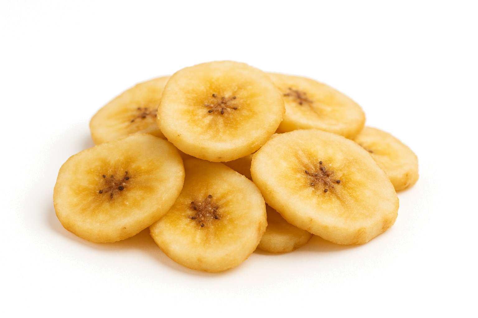 Τραγανά chips μπανάνας, με φυσική γλυκύτητα και ευχάριστη, ήπια φρουτένια γεύση. Αποτελούν ένα απολαυστικό σνακ, έτοιμο για κατανάλωση, ιδανικό για κάθε στιγμή της ημέρας.