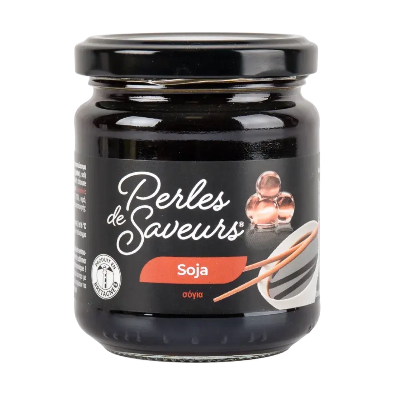 Σάλτσα σόγιας 80% (νερό, σόγια, σιτάρι, αλάτι); νερό, πυκνωτικό: καρβοξυμεθυλοκυτταρίνη, πηκτωματοποιητές: χλωριούχο ασβέστιο, αλγινικό νάτριο, οξινιστής: κιτρικό οξύ, χρωστική ουσία: καραμέλα, συντηρητικό: σορβικό κάλιο