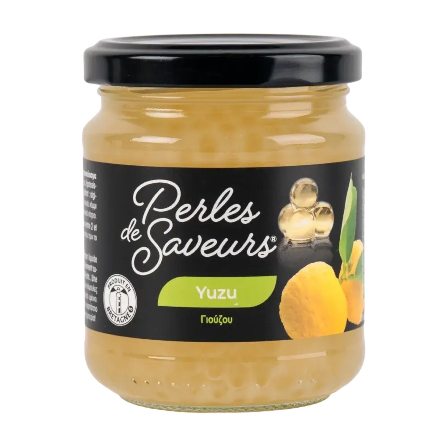 Χυμός Yuzu 70%, νερό, πυκνωτικό: κόμμι κυτταρίνης, πηκτωματοποιητές: χλωριούχο ασβέστιο, αλγινικό νάτριο, συντηρητικό: σορβικό κάλιο
