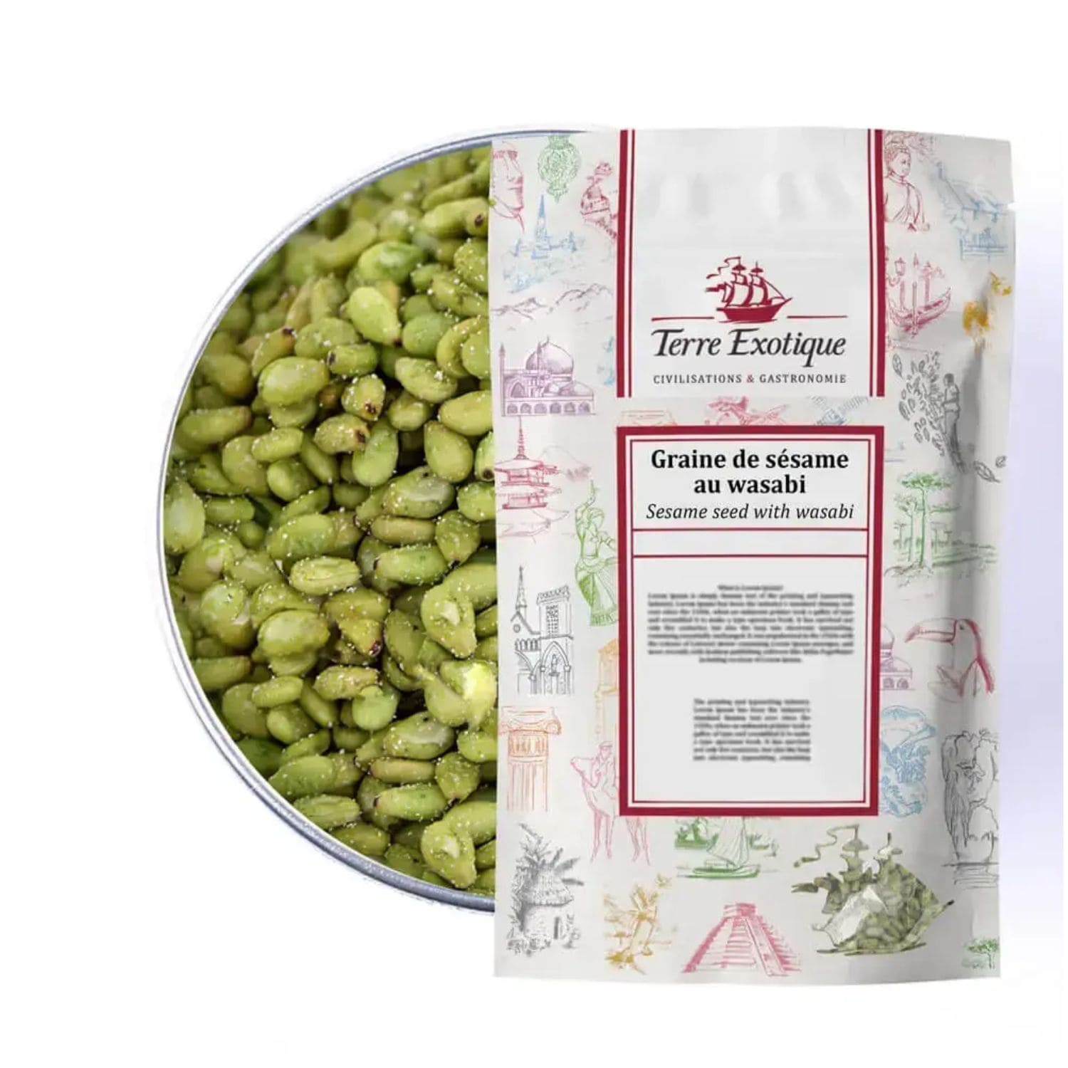 Σουσάμι με μια εκπληκτική νότα Wasabi! Μαγευτικά και πικάντικα αυτό το σουσάμι με Wasabi είναι ακαταμάχητο και γευστικά ελαφρύ… με τις φρυγανισμένες νότες τους, την τραγανή υφή και το ελκυστικό χρυσαφί πράσινο χρώμα.